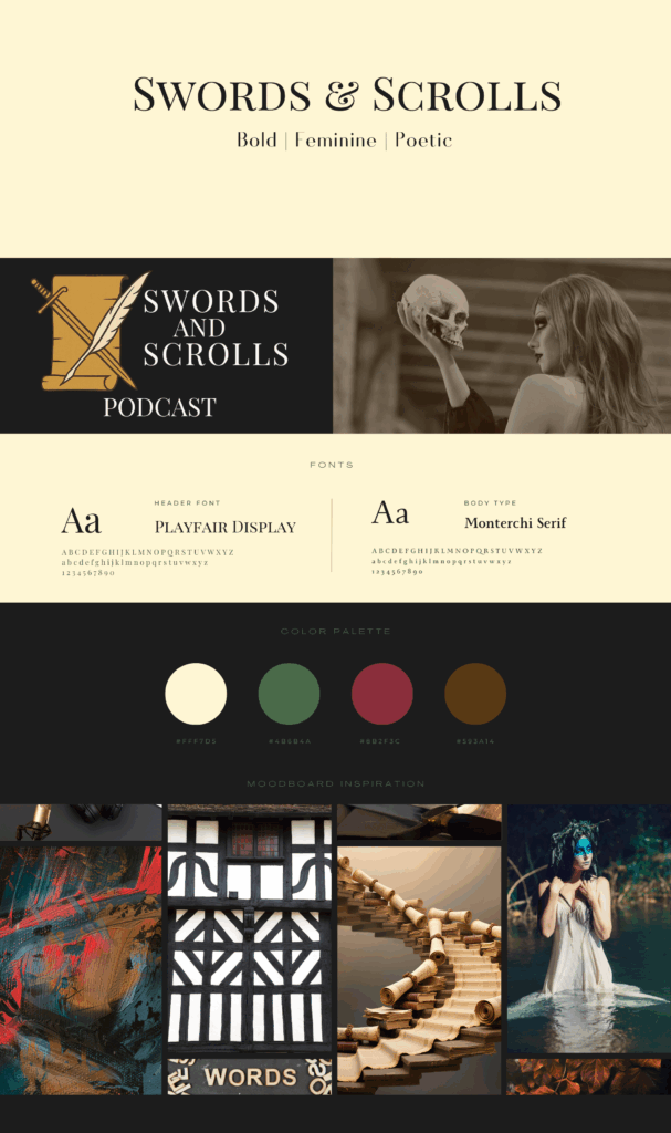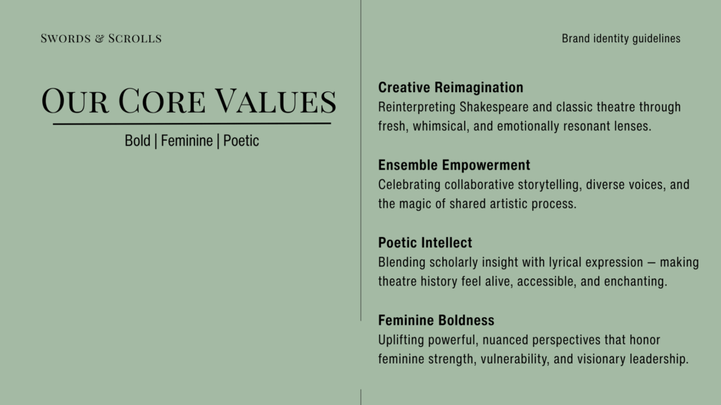 I have a couple of other brands and I tend towards neutral colors. I used AI to help me explore through some color ways, and some way to add a few bolder colors than I’m used to. I also wanted a bit of the royal feeling that Shakespeare often engenders.
