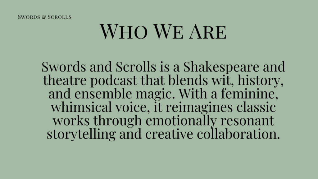 I’m excited to share this concept with you today. I’m creating a(nother) new podcast where we get to talk about and geek out about Shakespeare and all that is there. I’m approaching this from my Wildflower Women’s Ensemble angle – bold, feminine and poetic.